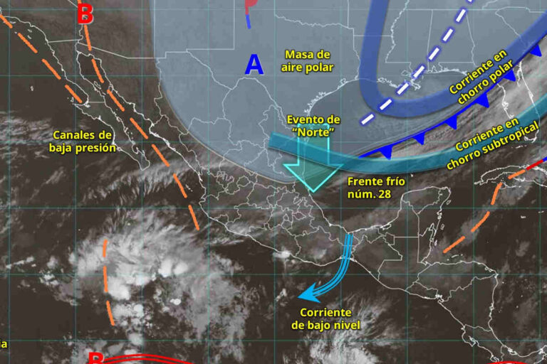 La masa de aire polar que impulsará al frente mantendrá el ambiente frío a gélido con heladas al amanecer sobre entidades de la Mesa del Norte y la Mesa Central, bancos de niebla en zonas montañosas del centro, oriente y sureste del país, así como evento de “Norte” con rachas de 80 a 100 km/h en el istmo y golfo de Tehuantepec, rachas de 60 a 80 km/h en el litoral de Veracruz, y rachas de 40 a 60 km/h en las costas de Tamaulipas, Tabasco, Campeche, Yucatán y Quintana Roo.