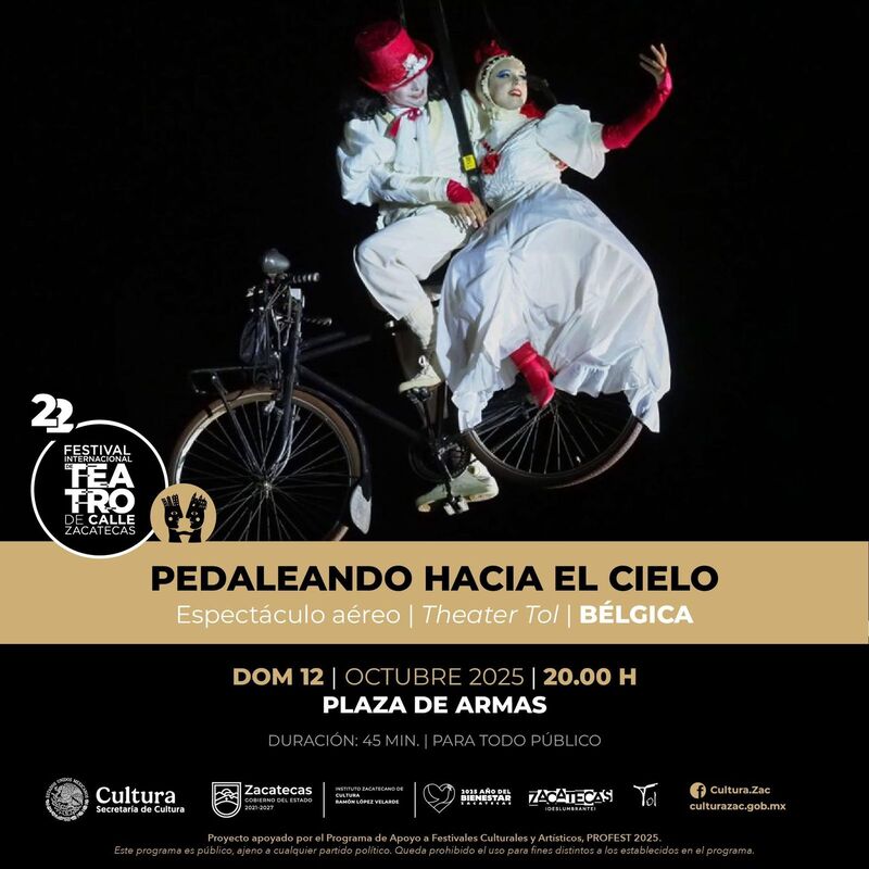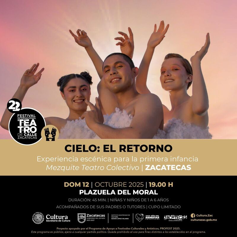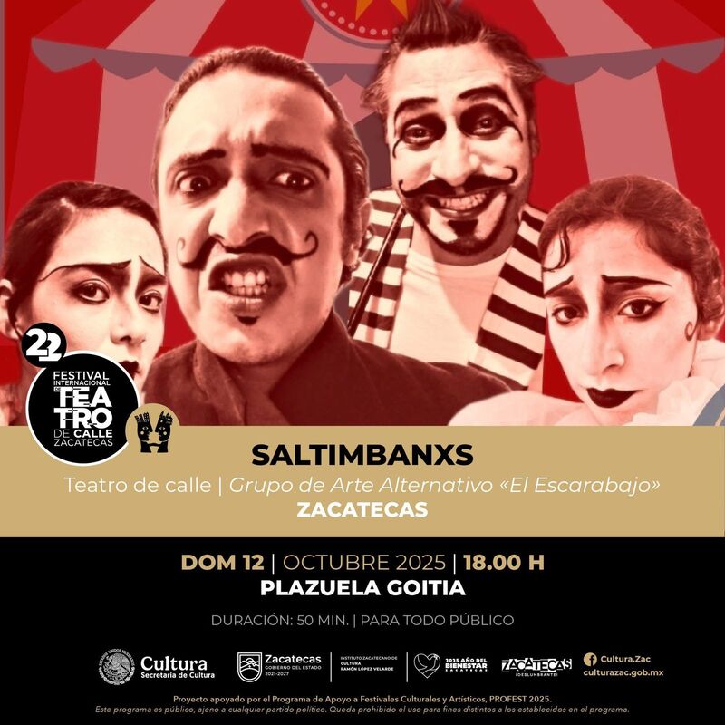 ZACATECAS.- Este domingo 12 de octubre el Festival Internacional de Teatro de Calle 2025 tiene un gran programa, por ello aquí te compartimos la agenda de este día.