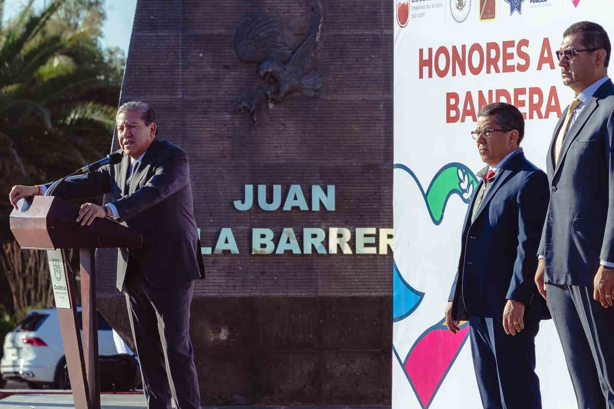 Durante la ceremonia cívica, a propósito del próximo cierre del Año del Bienestar 2025, Monreal reiteró su llamado a mantener la unidad, el respeto a la ley y la continuidad del trabajo conjunto por la pacificación del estado. El acto contó con la presencia de mandos militares, autoridades de seguridad y representantes federales y estatales.
