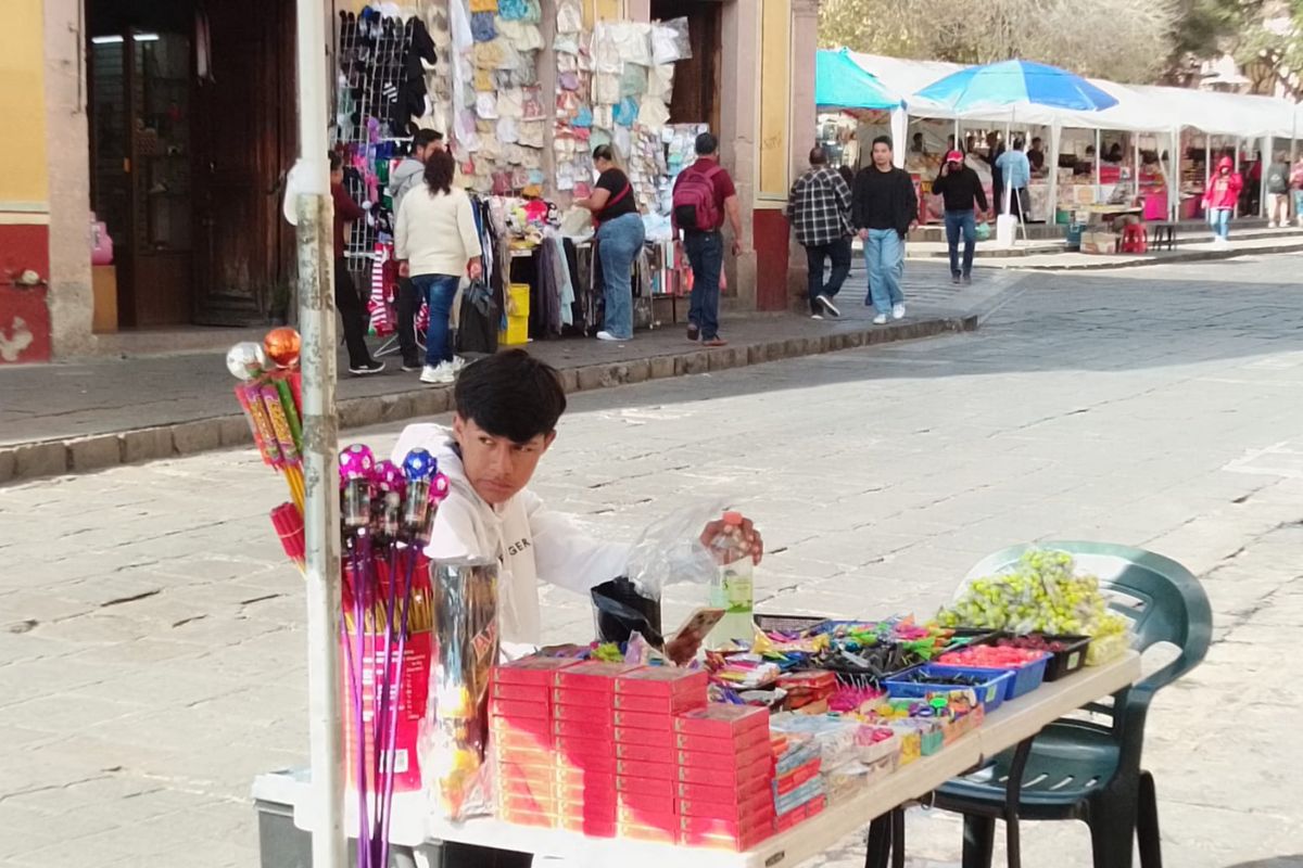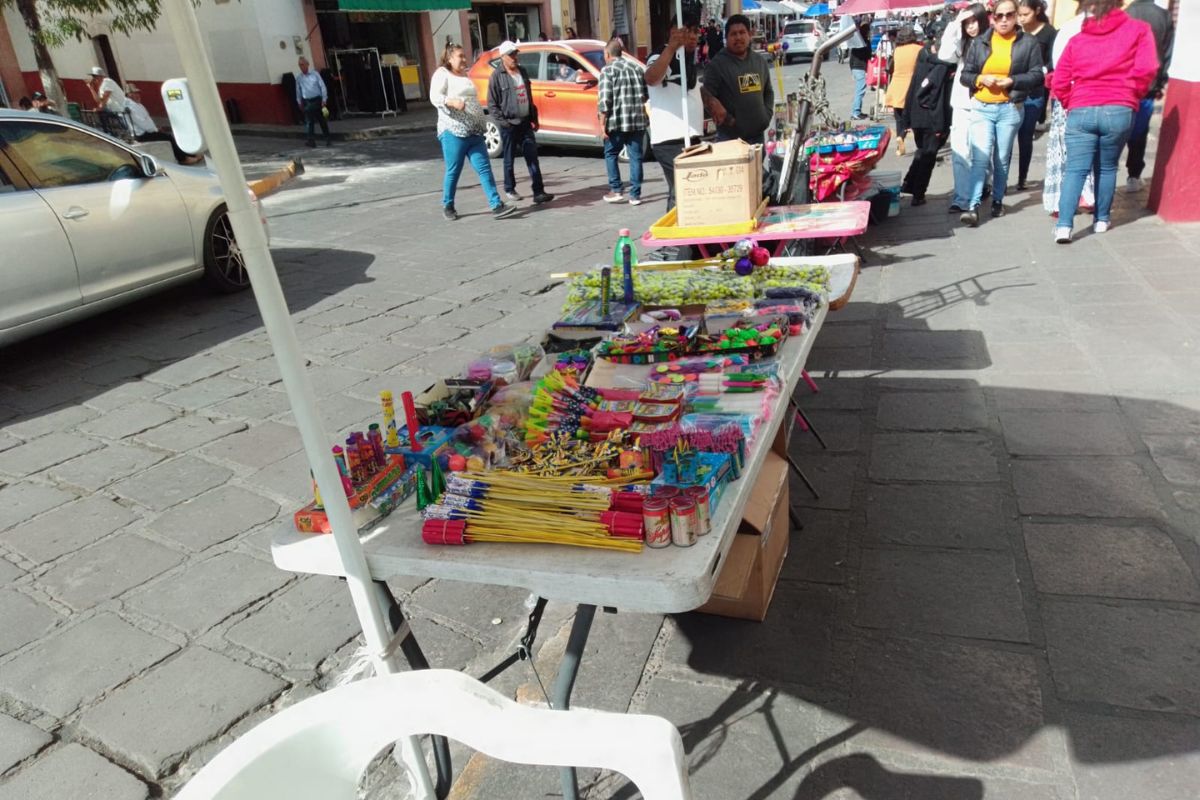 ZACATECAS.- La tarde de este domingo, alrededor de las 14:00 horas, varios vendedores de pirotecnia se instalaron sobre la calle Juan Aldama, frente al jardín Independencia, en pleno Centro Histórico de la capital, pese a la prohibición vigente para el comercio de explosivos.