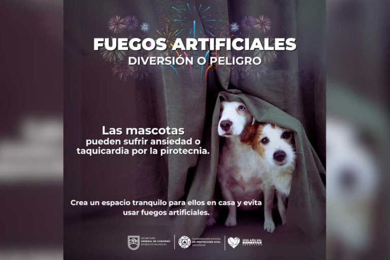 Protección Civil destacó que los animales de compañía son especialmente sensibles al sonido de los fuegos artificiales. En muchos casos, el miedo intenso puede provocarles intentos de escape, accidentes, lesiones o problemas cardiacos. Por ello, se recomienda crear espacios tranquilos dentro del hogar, mantenerlos resguardados y evitar, en la medida de lo posible, el uso de pirotecnia.