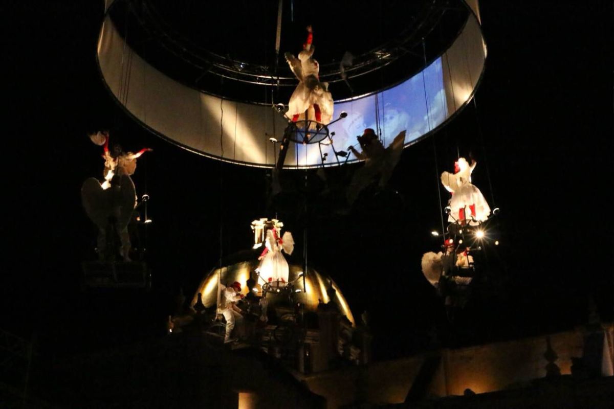 En “Pedaleando hacia el Cielo”, los ángeles suspendidos en bicicletas aéreas relataron, a los miles congregados en Plaza de Armas, una historia de amor que desafió la oscuridad y la tristeza, y que elevó al público la fuerza simbólica de los sentimientos que esta noche les unieron.