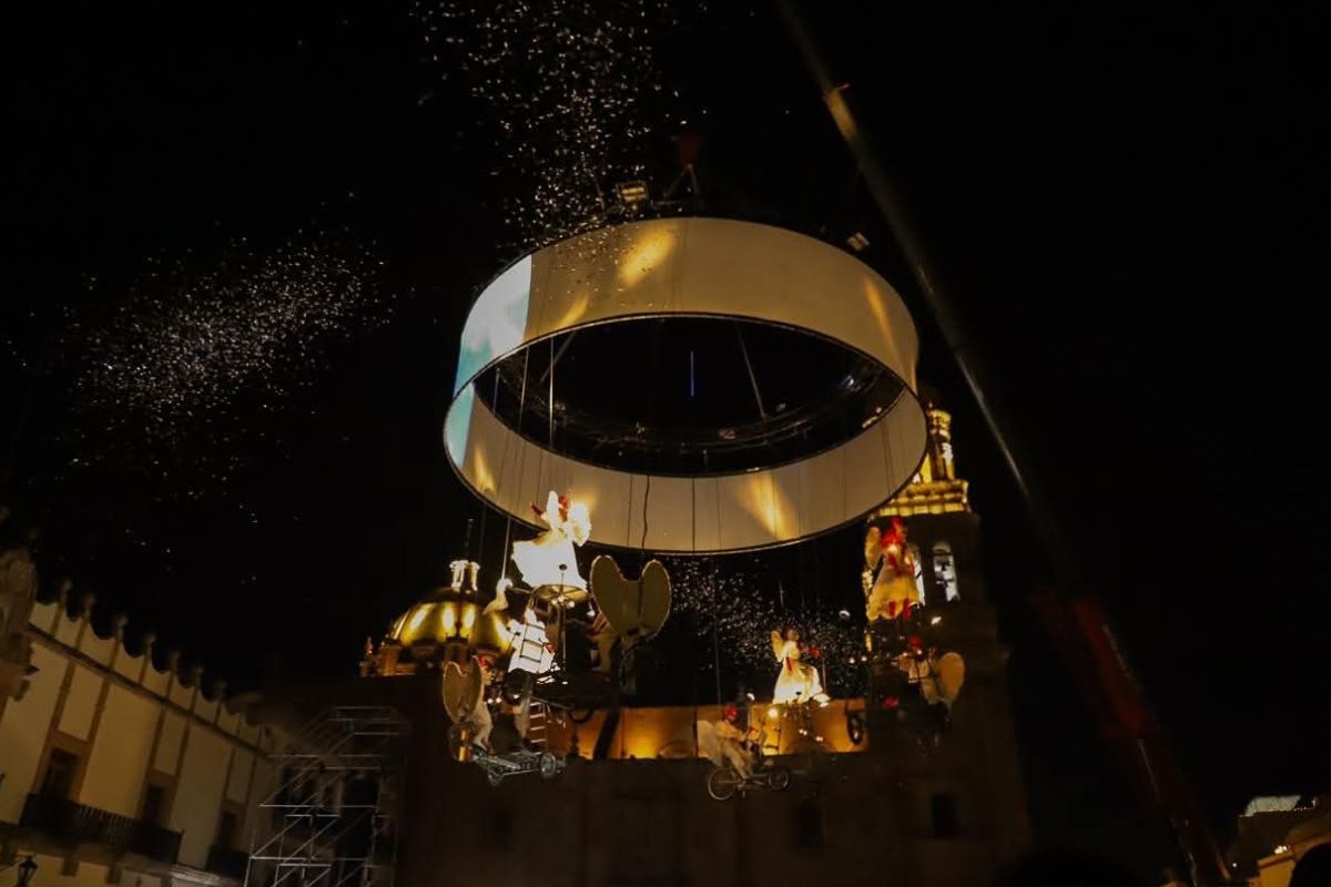 Bajo la organización del Gobierno de Zacatecas, que encabeza el mandatario estatal David Monreal Ávila, bajo la coordinación del Instituto Zacatecano de Cultura (IZC) “Ramón López Velarde”, la puesta en escena provocó la ovación y aplausos de las y los zacatecanos en los primeros minutos de su desarrollo al ser integrada la pieza “Cucurrucucú paloma”, del compositor fresnillense Tomás Méndez Sosa, y más tarde la proyección de la arquitectura zacatecana.
