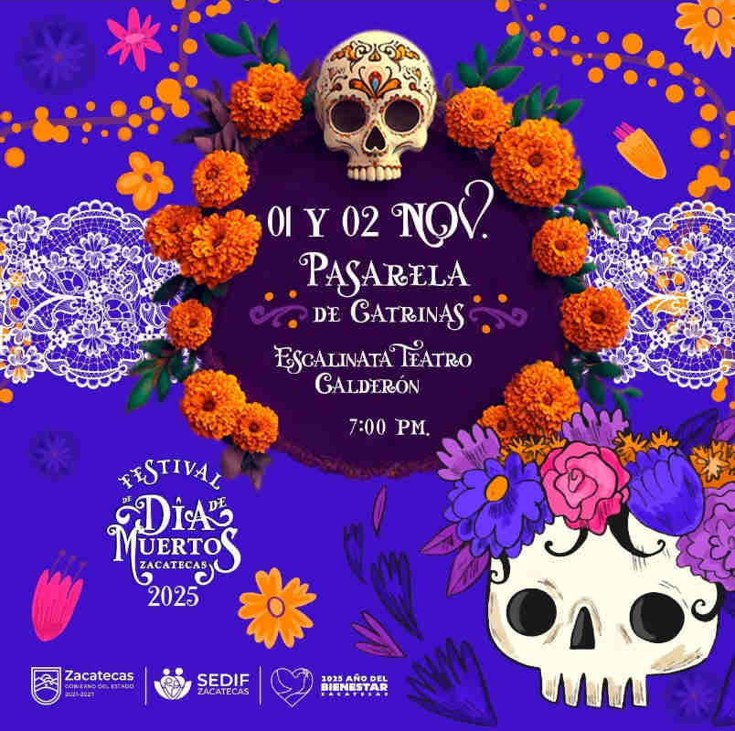 ZACATECAS.- Como parte de las actividades del Festival de Día de Muertos Zacatecas 2025, el Gobierno del Estado, presentará espectaculares Pasarelas de Catrinas, que fusionan el arte, la cultura y la moda, en una de las festividades más emblemáticas de México.