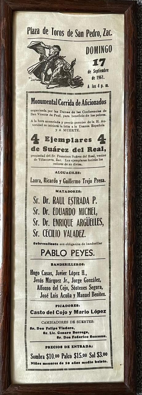 El domingo 17 de septiembre de 1961 en la recordada plaza San Pedro actuó el Doctor Arguelles al lado de sus colegas médicos Raúl Estrada Padrés y Eduardo Michel Olivera así como Don Cecilio Valadez y como sobresaliente el recordado aficionado zacatecano Pablo Reyes Reimers en la lidia de ejemplares de “Suárez del Real “.
