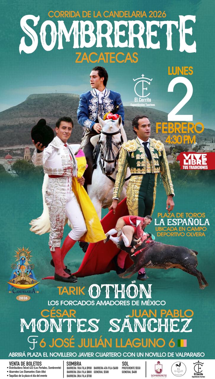 El escenario será la plaza de toros portátil “La Española” que habrá de ubicarse en el campo deportivo Olvera, donde a partir de las 4.30 de la tarde harán el paseíllo el rejoneador Tarik Othón, acompañado de los Forcados Amadores de México y en la lidia ordinaria el mano a mano del hidrocálido Juan Pablo Sánchez y el zacatecano César Montes que lidiarán un encierro de la ganadería zacatecana de José Julián Llaguno.