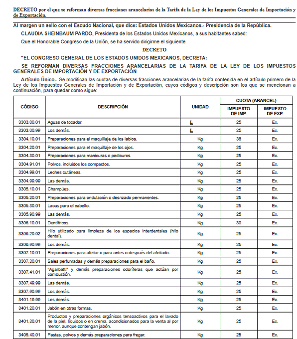 CIUDAD DE MÉXICO.- El Gobierno federal publicó este lunes en el Diario Oficial de la Federación (DOF) un decreto que reforma diversas fracciones arancelarias de la Ley de los Impuestos Generales de Importación y Exportación, mediante el cual se incrementan los aranceles a más de 1,400 productos provenientes de países con los que México no mantiene tratados de libre comercio, principalmente China, así como India, Corea del Sur, Indonesia y Tailandia.