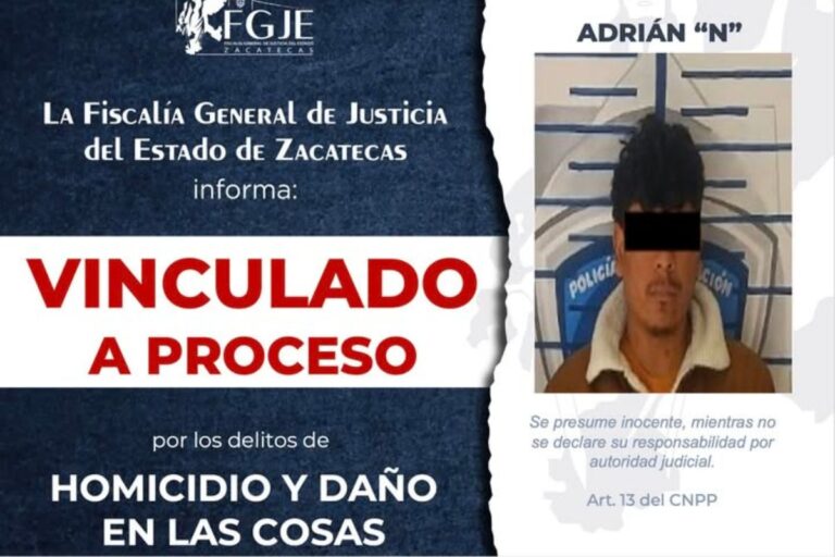 JUAN ALDAMA.- La Unidad de Investigación Mixta de Miguel Auza logró la vinculación a proceso de Adrián “N” por los delitos de homicidio y daño en las cosas, tras un accidente múltiple ocurrido en diciembre de 2025 en el municipio de Juan Aldama.