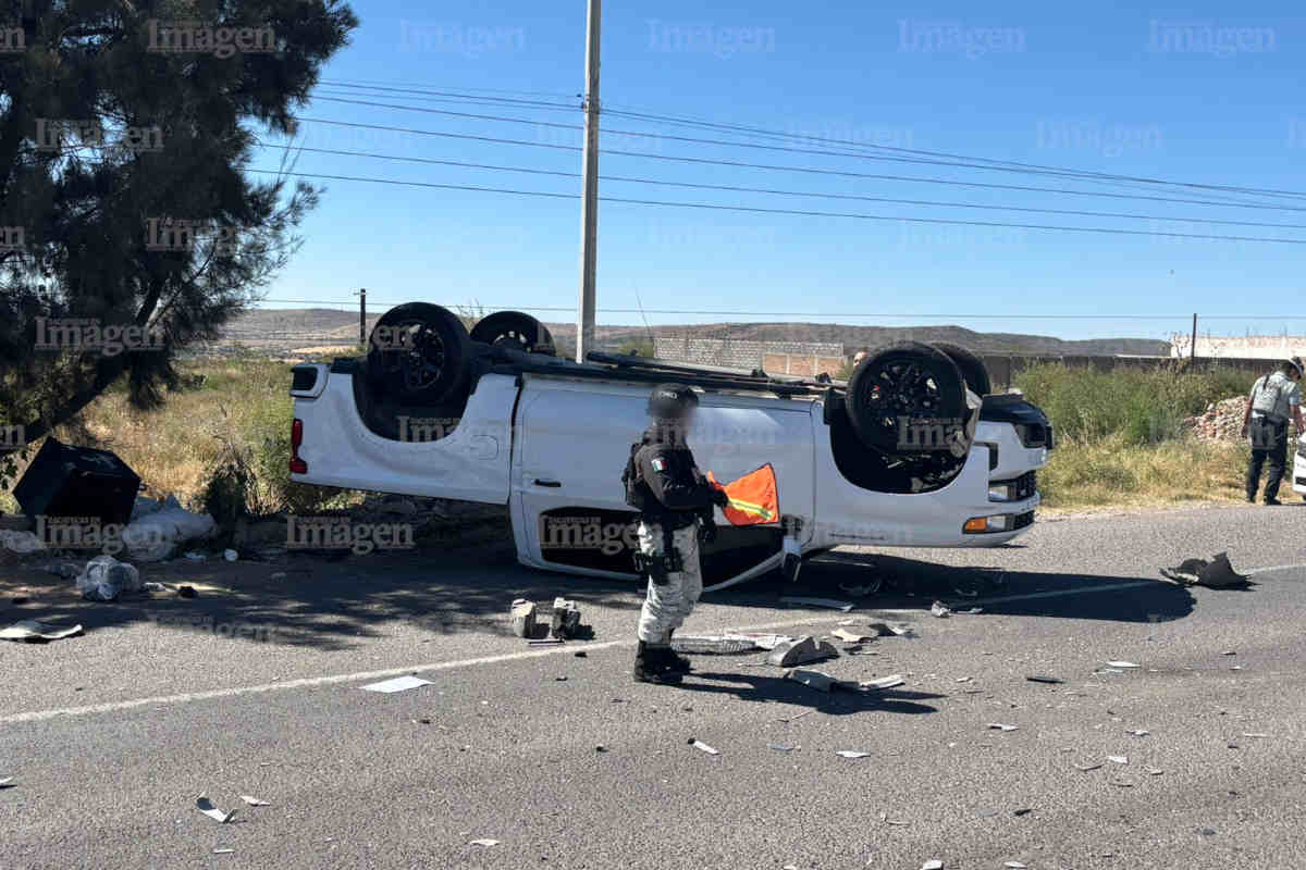 FRESNILLO.- Un aparatoso accidente dejó al menos a una persona lesionada; uno de los vehículos involucrados acabó volcado.