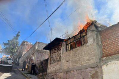 Zacatecas, Zac.– Personal de la Protección Civil Municipal de Zacatecas atiende un incendio en una casa habitación registrado la mañana de este día en la colonia Lázaro Cárdenas, específicamente en la zona de Francisco Villa.