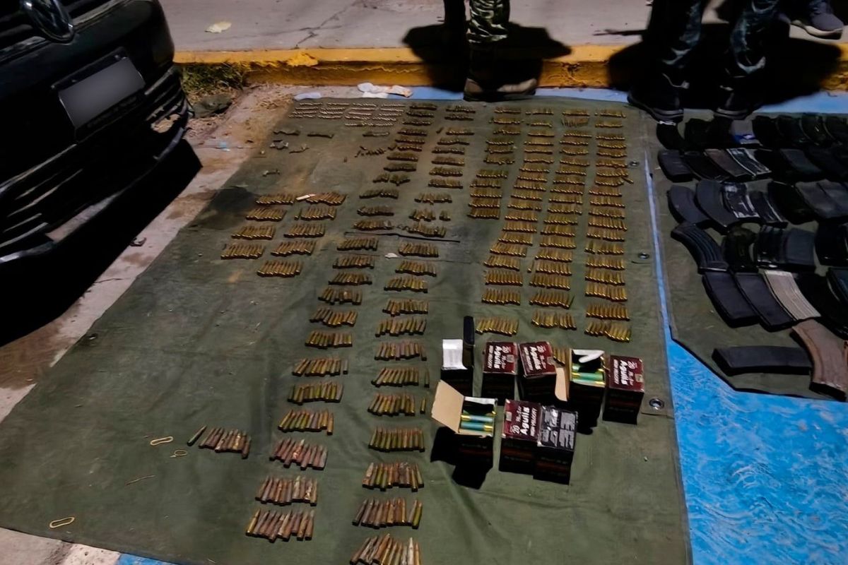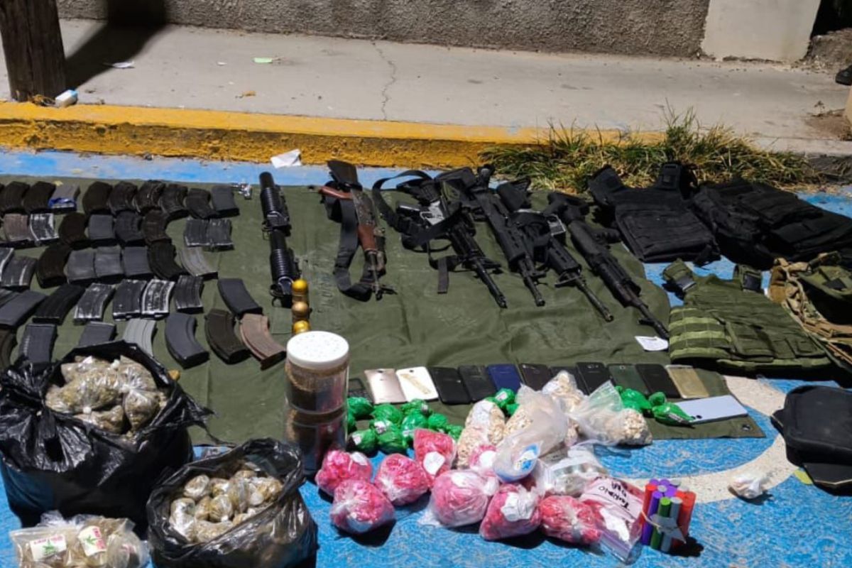 Durante la intervención se aseguraron tres vehículos, así como un arsenal compuesto por seis armas de fuego —cinco largas y una corta— y seis granadas. También fueron decomisados 52 cargadores para arma larga, tres cargadores para arma corta, y 1,682 cartuchos de distintos calibres.