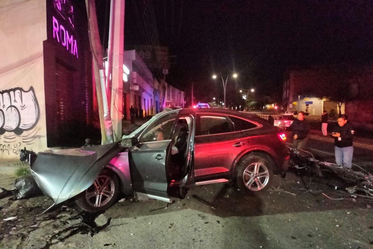 El percance ocurrió minutos antes de las 2:00 de la mañana, en el tramo que conduce de Zacatecas hacia Guadalupe, a la altura de la Secundaria Técnica No. 1, cuando el conductor de una camioneta Audi de lujo color gris perdió el control del vehículo. De acuerdo con reportes preliminares, el exceso de velocidad habría sido uno de los factores que originaron el siniestro.