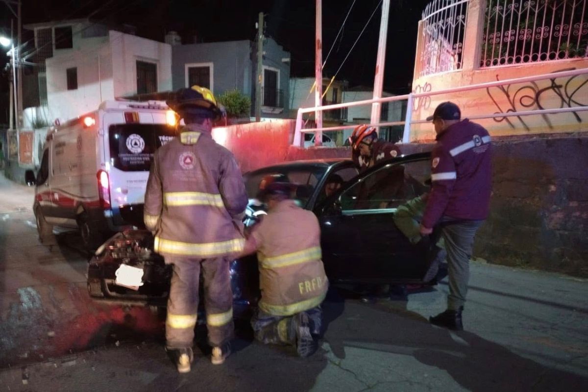 Al llegar al lugar, los cuerpos de emergencia encontraron un vehículo compacto de color oscuro con daños severos en la parte frontal, resultado del impacto directo contra un muro de contención ubicado a un costado de la vialidad.