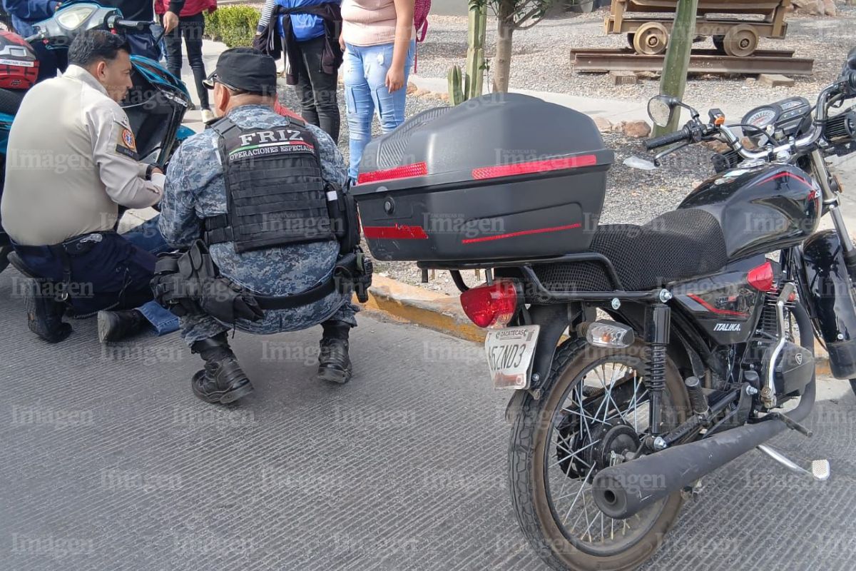 FRESNILLO.- La tarde de este jueves un hombre que manejaba una motocicleta, acabó lesionado luego de que chocara con un carro.