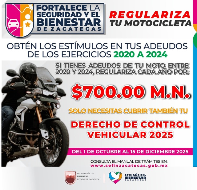 En el caso de motocicletas con adeudos anteriores a 2025, se determinó un esquema especial para fomentar la regularización y evitar que estas unidades sean utilizadas en hechos ilícitos. Bajo este esquema, las y los contribuyentes podrán liquidar cada ejercicio fiscal pendiente con un pago único de 700 pesos.