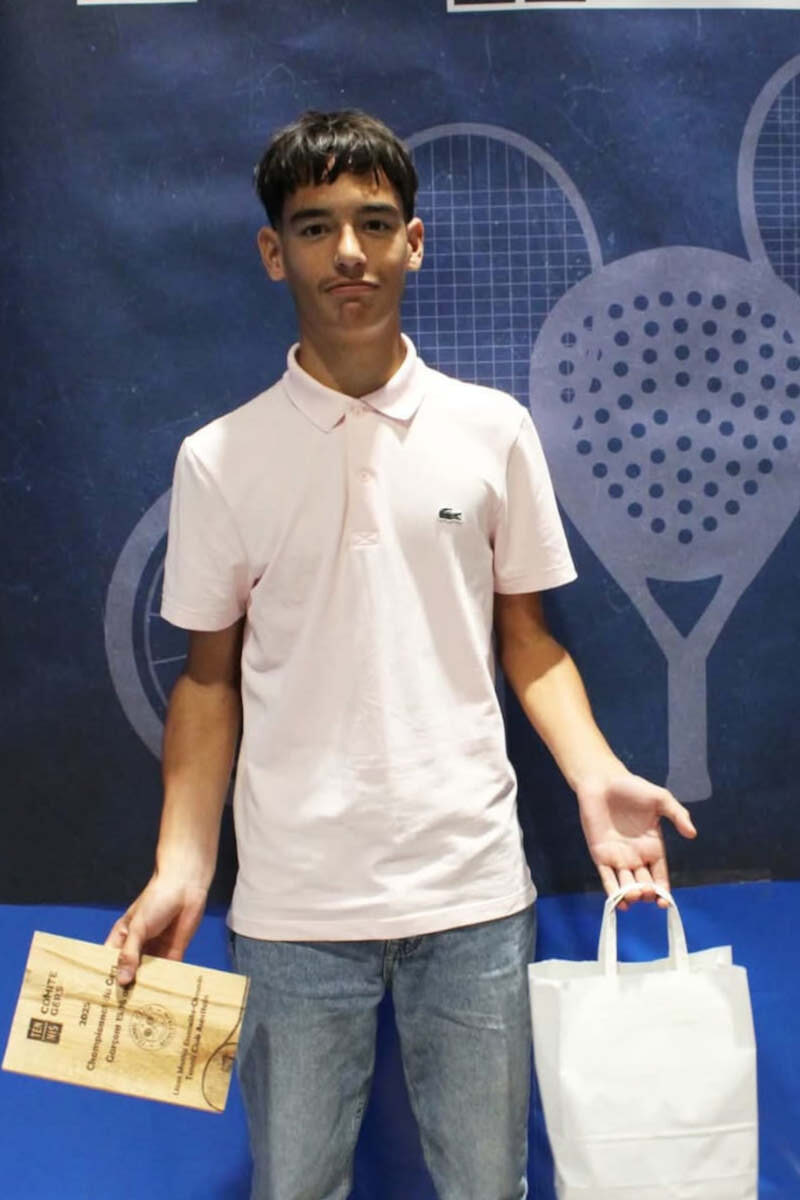 El Comité de Tenis de ese Departamento hizo entrega a Liam-Mathis del Trofeo como monarca en la categoría de 15/16 años pero además Campeón Senior de la 3a serie equivalente en nuestro país a una Categoría “A” .