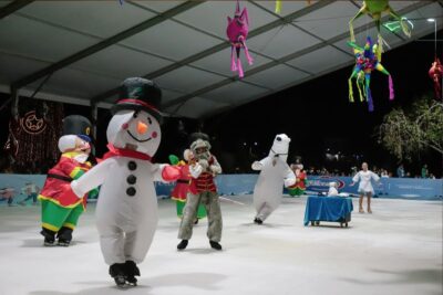 Con el objetivo de contagiar el espíritu navideño y ofrecer una atracción durante la temporada decembrina, autoridades municipales inauguraron la pista de hielo y encendieron el arbolito de Navidad, instalado en el Monumento a la Bandera.