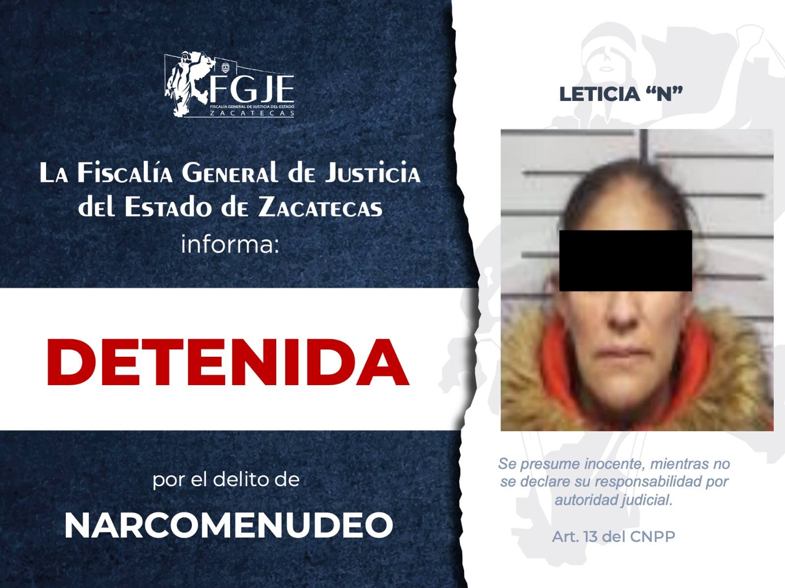 Leticia “N”, detenida en Zacatecas, Zacatecas, por narcomenudeo.